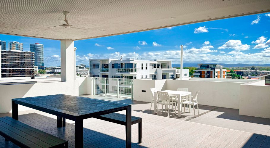 - Access to apartment Rooftop Terrace with BBQ's, tables and chairs overlooking the Broadwater.